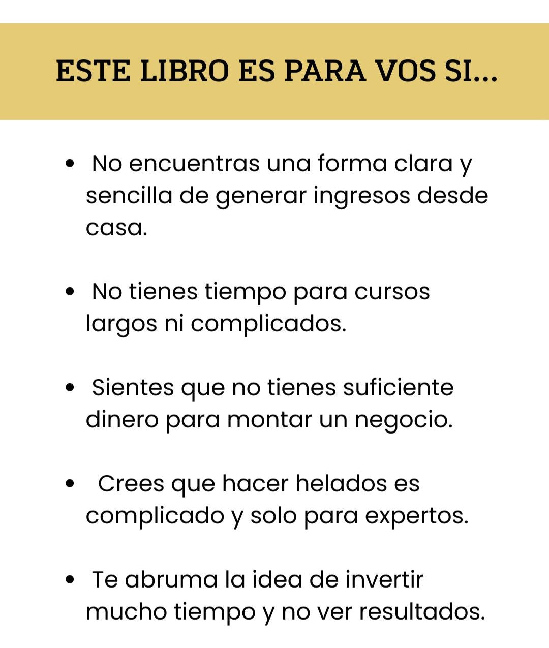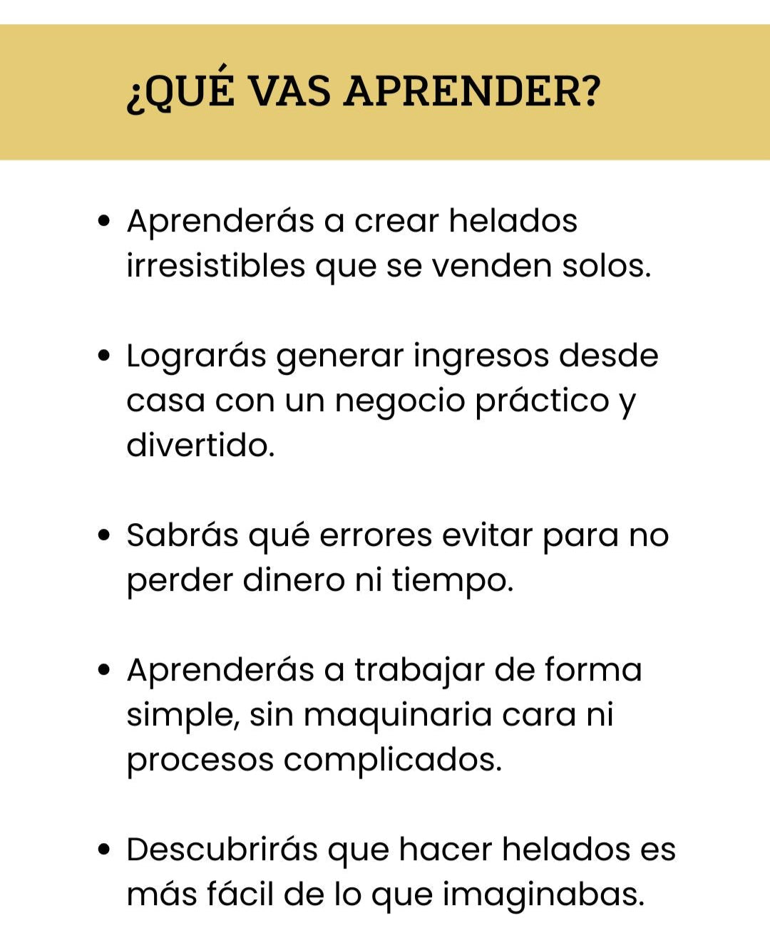 Nuestro recetario no solo ofrece más de 30 recetas de helados en bolsa, sino que también incluye un enfoque práctico para emprender y generar ingresos con ellas en un plazo corto. Es una guía diseñada tanto para aprender como para comenzar un negocio rentable.